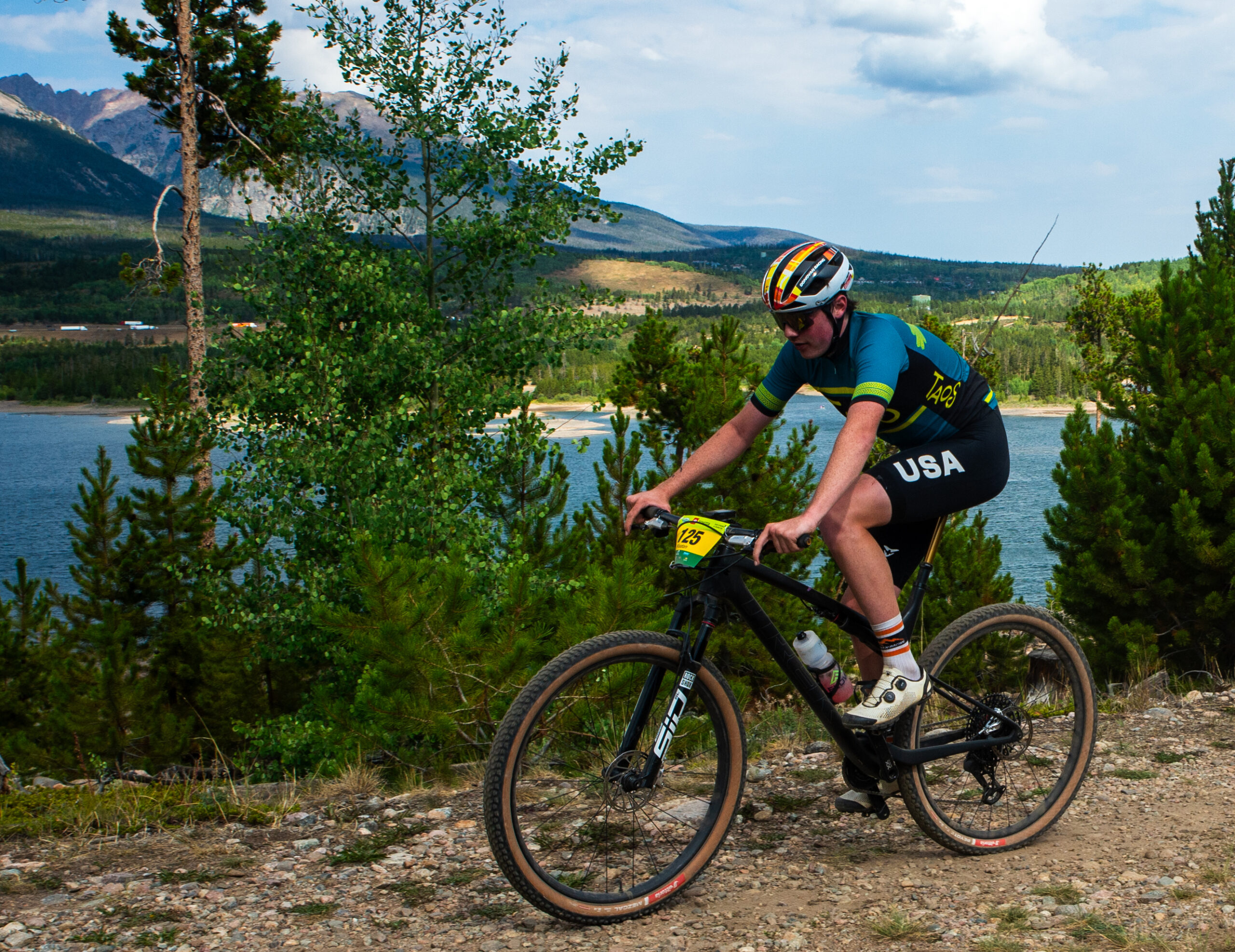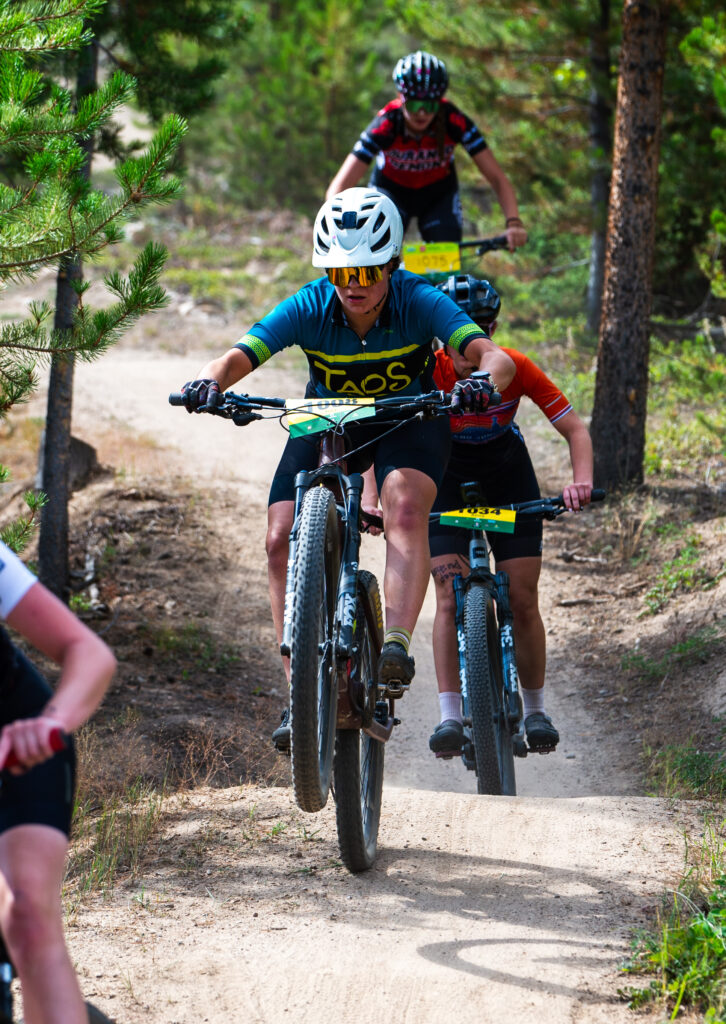Last weekend, the Taos Composite High School Mountain Bike Team traveled to Frisco, Colorado for race #1 of the 2025 Colorado League season. Thanks to our race sponsor, Rodger Thornton, 15 athletes plus an enthusiastic entourage of about 30 coaches, parents, family members, and friends all were able to make the trip, a strong statement of support and encouragement for these teens. On Saturday, the team converged to pre-ride the course. Taos Composite had not raced at this location since 2017. The 6-mile course is a fantastic mix of singletrack with short, punchy climbs and ripping corners and descents. There are plenty of passing opportunities for the skilled rider and the views are spectacular. Riders and coaches agreed that the course was a blast.