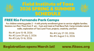Our unique Rio Fernando camps are funded by grants and donors and are completely free to Taos youth entering grades 2-4. The enrollment process for these camps prioritizes SNAP-eligible families and aims to increase accessibility of FIT programs and the great outdoors! We ask that families only sign up for 1-2 weeks of Rio sessions to ensure everyone who wants to has a chance to participate.